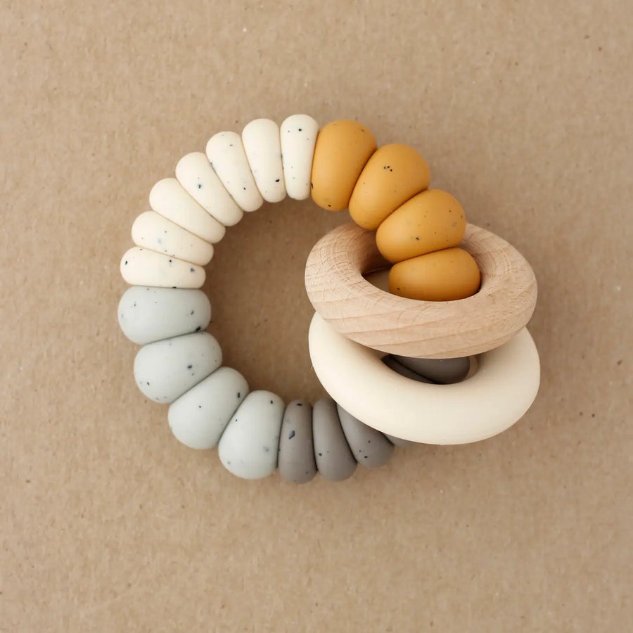 Beaded Silicone and Wood Teether- Multi Color Round Rings
