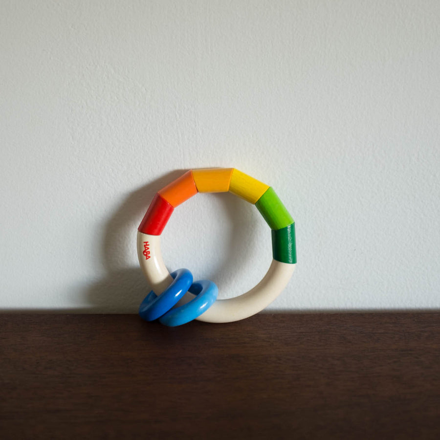 Your child will absolutely love the classic Kringelring Clutching Toy from HABA! The flexible wooden teether and the smaller wooden rings attached to it are expertly designed to help develop clutching and grasping skills and with bright, vibrant colors kids around the world have come to love it.