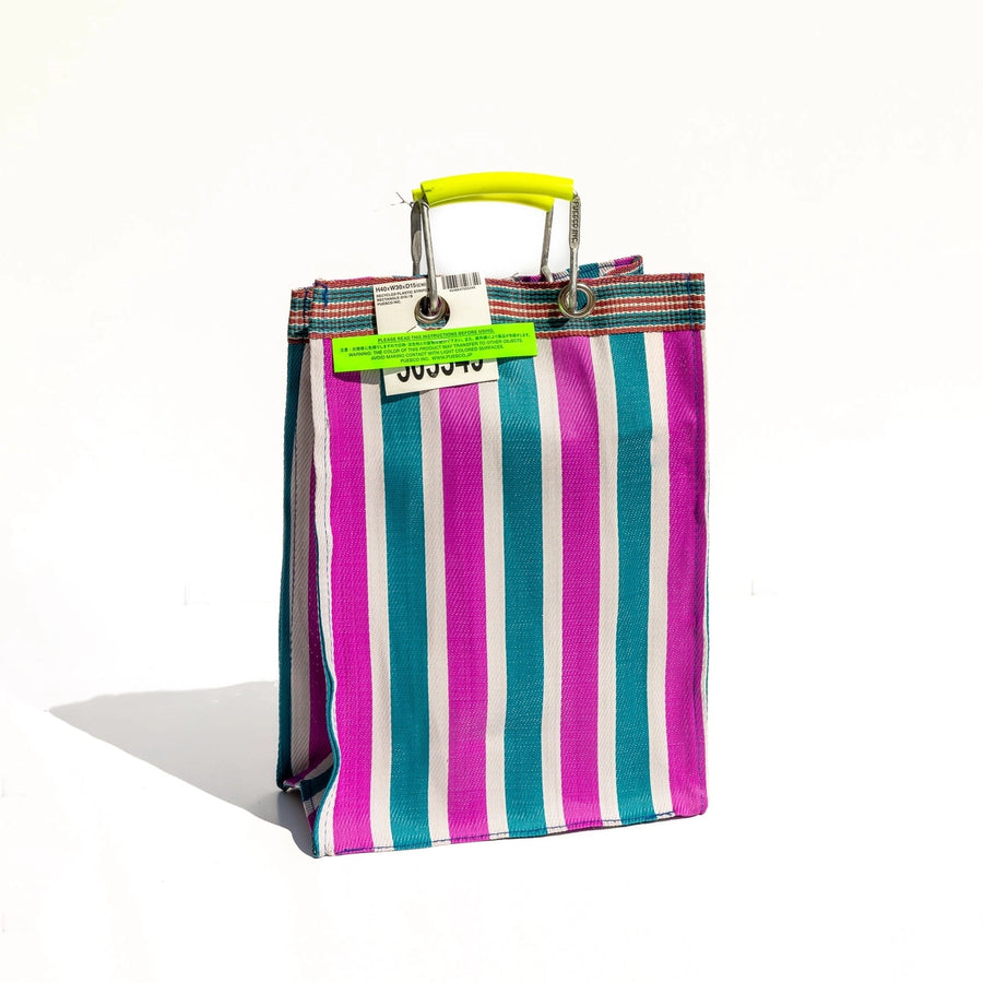 Retro Recycled Stripe Market Bag- Tall (Pink and Blue)