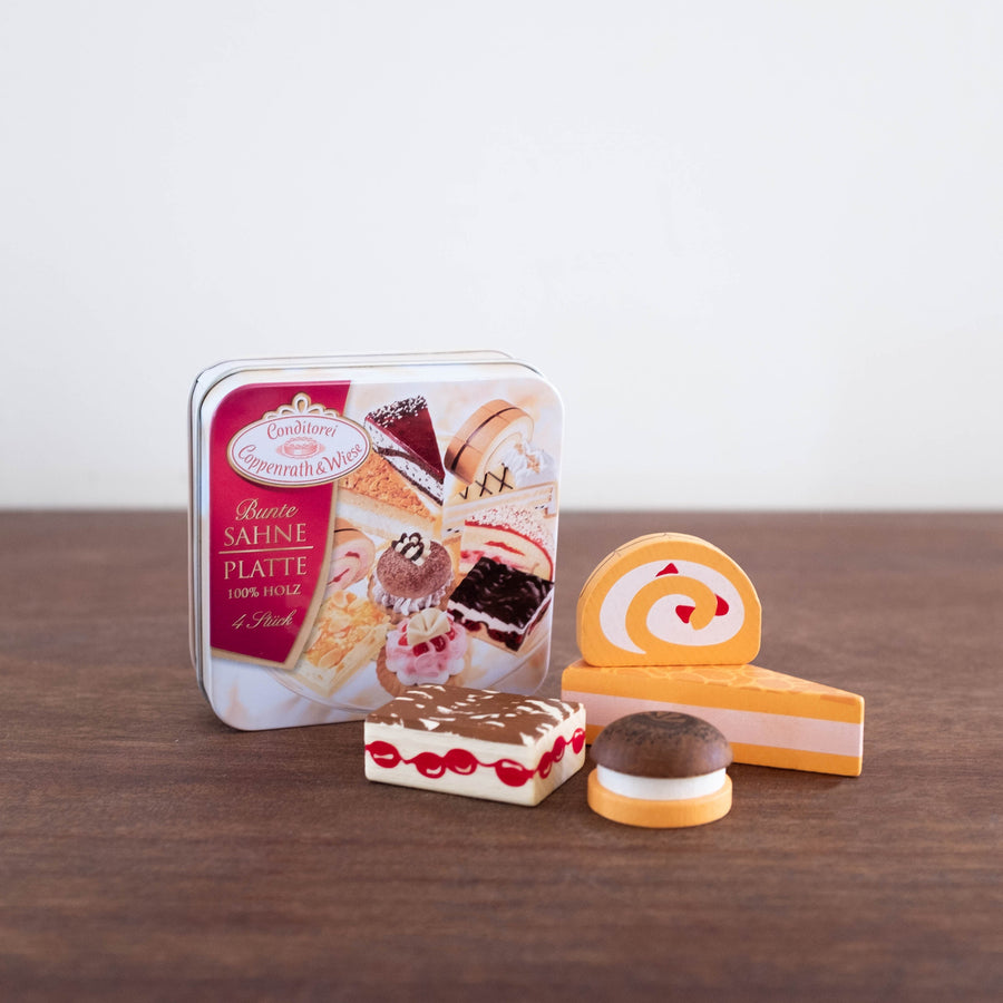 NEW Wooden Pastries in a Tin Set