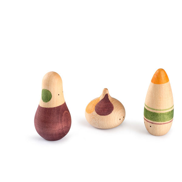 A delightful family of three wooden figures, just the right size to carry along on your adventures in the world! Are they woodland spirits, or yet-to-be-discovered animals? No matter how you view them, they are friendly and fun!