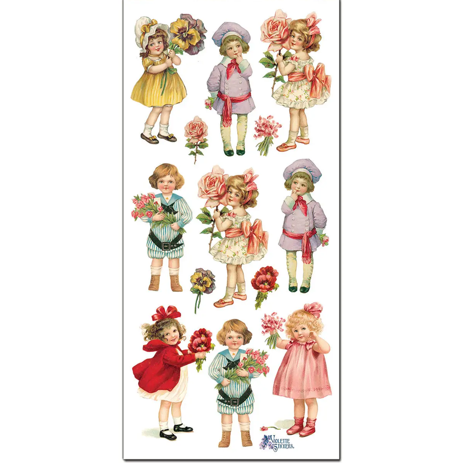 Victorian children stickers. 2 sheets of 4" x 8" acid free paper stickers in clear plastic sleeve.