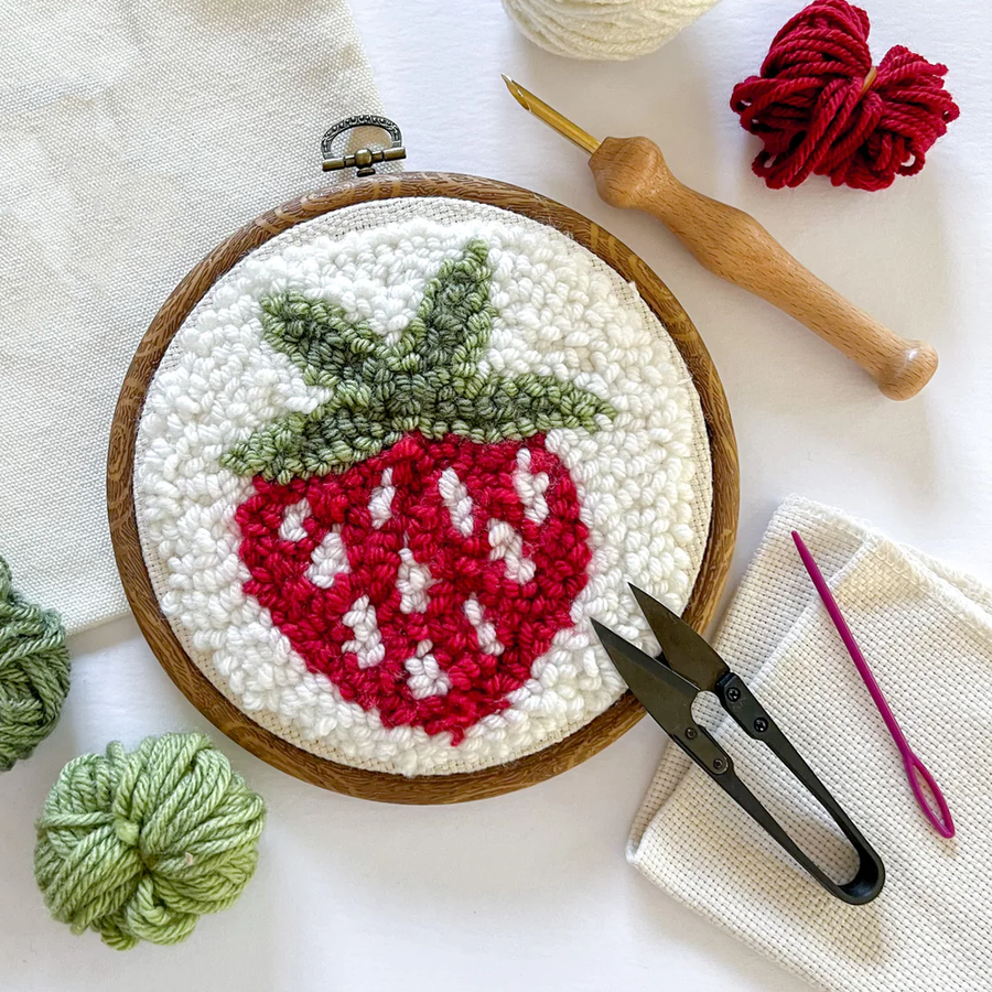 Here's what you'll receive: • Embroidery Hoop • Punch Needle Tool • Measured Yarn • Monk's Cloth • Printed Instructions The hoop measures about 7in.