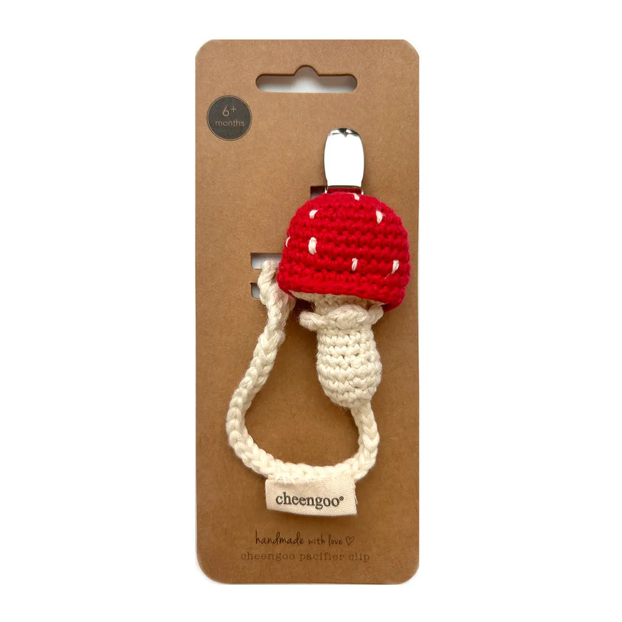 Toadstool Mushroom Organic Crochet Pacifier Clip