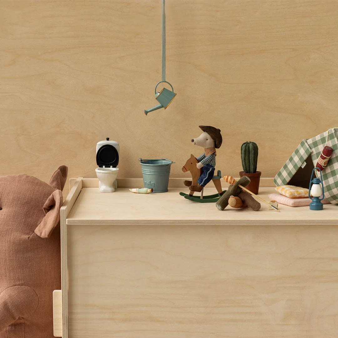 Saddle up for adventure! Cowboy Mouse is dressed in tiny blue jeans, a bandana, and a classic cowboy hat - ready to ride off on a rocking horse. Our little friend is set for hours of play and endless journeys across the wild west.