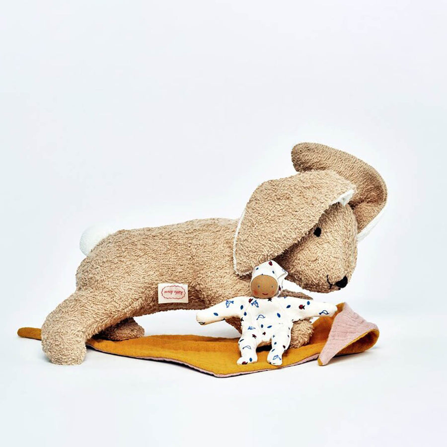 Fast as the wind, Holly Hare and her little elf friend will hop into your child's heart. The little stuffed rabbit and her friend, dressed in a gorgeous Käthe Kruse farm-print suit, love traveling with your child. They're always there, even at bedtime, because Holly has super-soft cotton fur and invites cuddling. This turns every everyday situation into a wonderful experience with friends.
