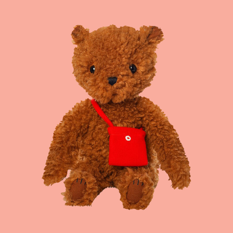 This delightful character is straight from the pages of Emily Winfield Martin's New York Times best-selling story books. The Imaginaries Bruno Bear brings one of Emily's imaginative storybook illustrations to life. This nostalgic brown bear, covered in luxuriously fluffy fabrics, and comes with a sewn-on red felt satchel. Bruno's soft expression and kind face are sure to be enjoyed by children of all ages.