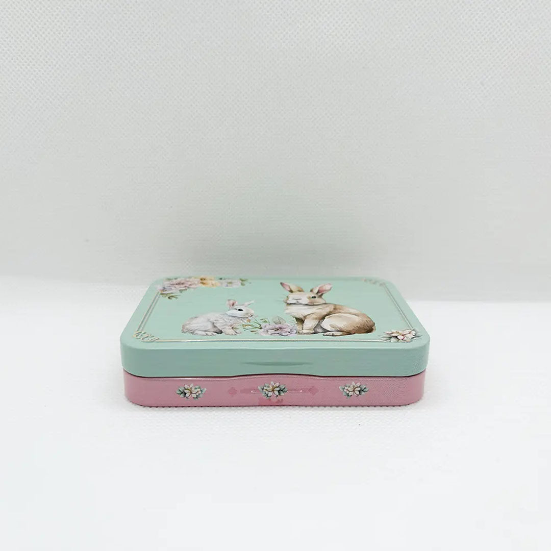 This mini tin features a realistic rabbit design.