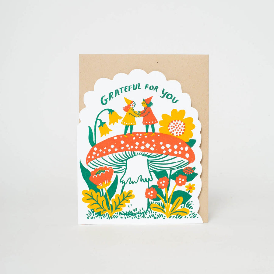 Grateful Gnomes Letterpress Greeting Card by Phoebe Wahl