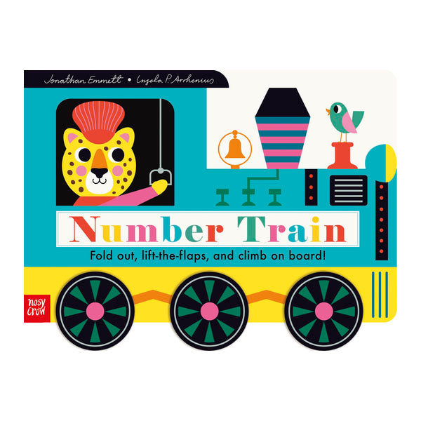Good Housekeeping Kids' Book Award Winner! All aboard the Number Train in this lift-the-flap rhyming counting book with six spinning wheels! Count from one to ten in this vibrant lift-the-flap concertina book! Who is munching on a snack? Who is taking a quick nap? And who's that making lots of noise? Find out in this train-shaped gift book. Learn the numbers, lift the flaps, and enjoy the rhyming text and animal scenes inside each carriage before flipping the book to play the fun counting game on the reverse. Then push the train-shaped book along on its six moving wheels! With bright, cheerful artwork from Ingela P. Arrhenius, illustrator of the bestselling Felt Flaps and Peekaboo series, and a clever rhyming text from Jonathan Emmett.