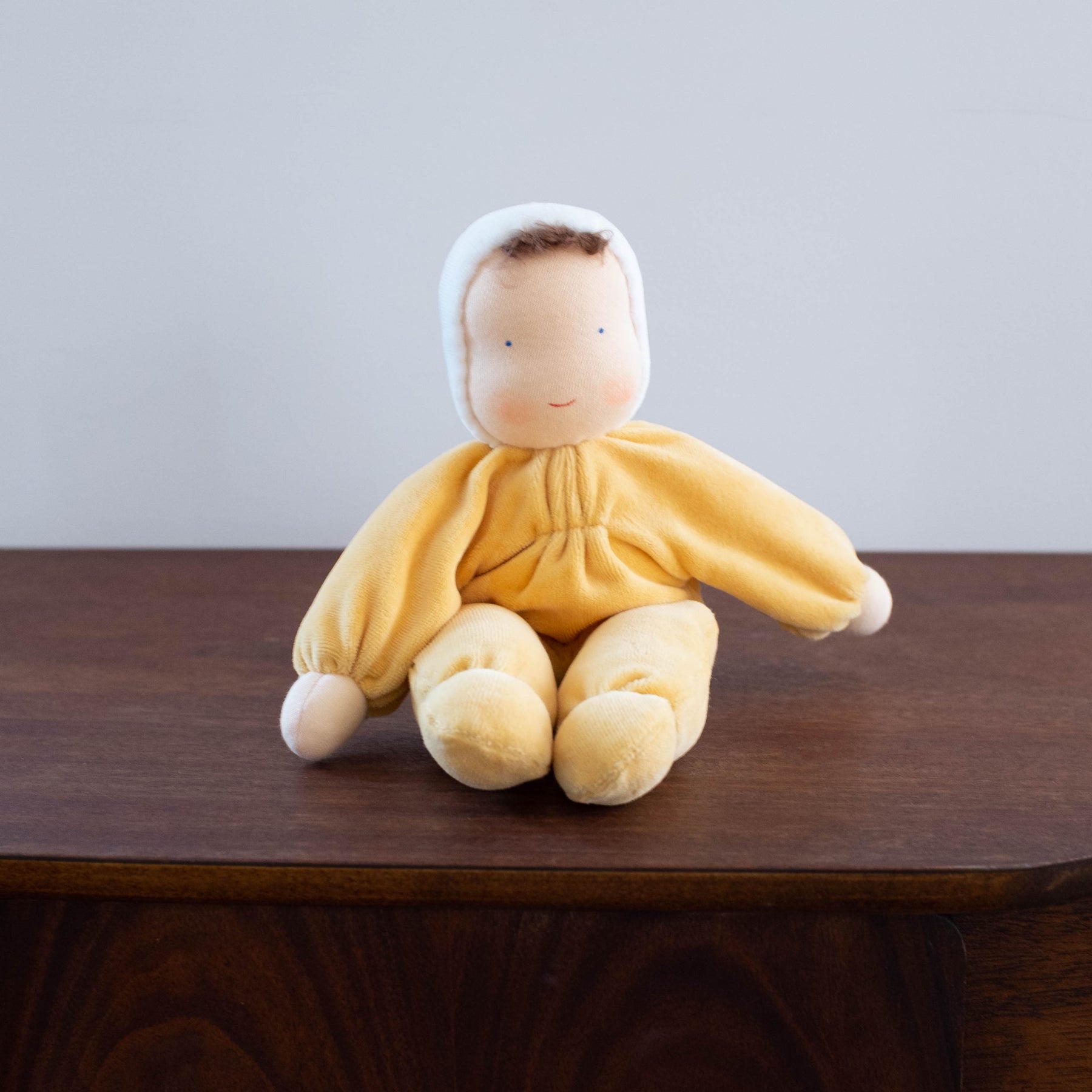 Grimm's dolls are made in Europe in the traditional handcraft method. The very loving faces are also painted by hand, giving each doll a unique expression.