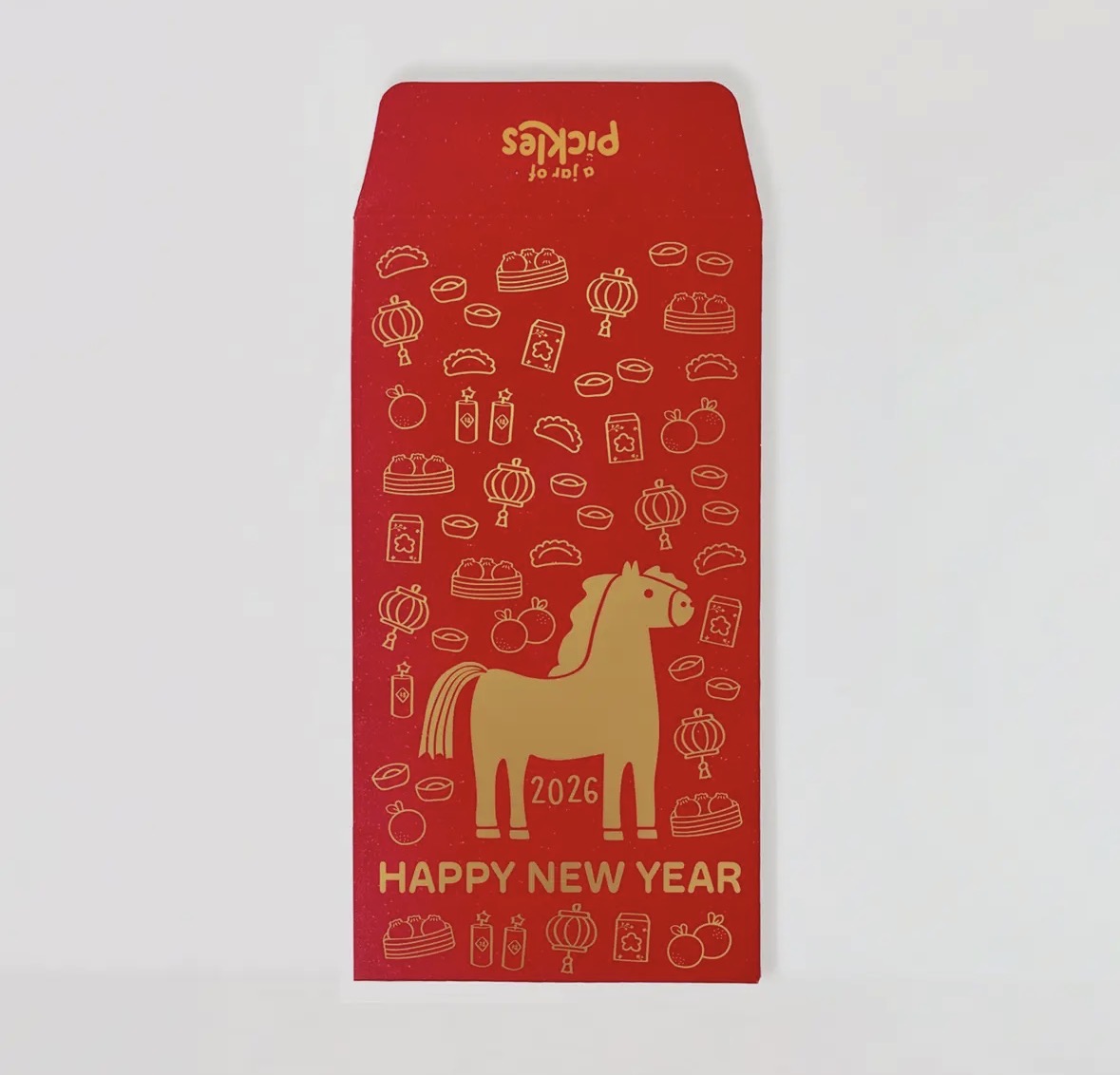Lunar New Year is the time to gift red envelopes, or 紅包, hóngbāo, to friends and family. Inside red envelopes are crisp, new bills that symbolize luck, prosperity, and good wishes for the new year. Comes in a set of 3 mini red envelopes that fit half-folded dollar bills. Dumplings signify luck, ingots signify wealth, oranges signify happiness and prosperity, and lanterns signify a fresh start. Set of 3 red envelopes Each measure 4.25" x 2.75" when folded Detailed gold foiling design with subtle gold speckles throughout Matte, semi-thick paper feels more luxe than traditionally thinner red envelopes Die-cut closure slot to tuck in flap on back of envelope Fits half-folded US dollars Protected & packaged in a clear sealed bag