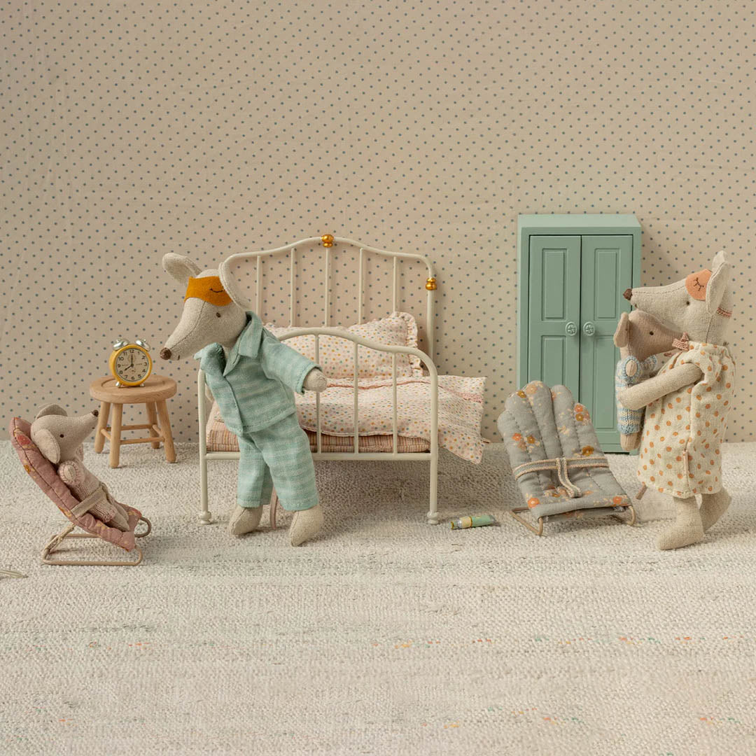 With this baby sitter, it is easy to put your little friends to sleep. The base is made of metal and covered by the most lovely fabric. The chair fits my sized rabbits and baby mice perfectly.