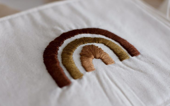 These gorgeous doll carriers, featuring a hand embroidered, earthy-toned rainbow, makes the perfect doll accessory for your Doll! Made to fit the 38cm, or soft-bodied style dolls. Tie back and sides to hold your baby doll.