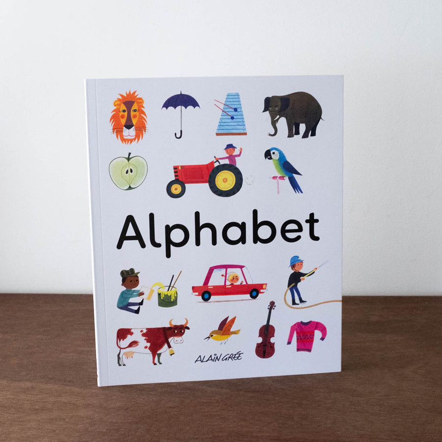 Each letter of the alphabet is covered using both upper and lower case letters and accompanied with a selection of words beginning with each specific letter. Every word is illustrated with Grée’s bold and charming vintage artwork that leaps out from every page.