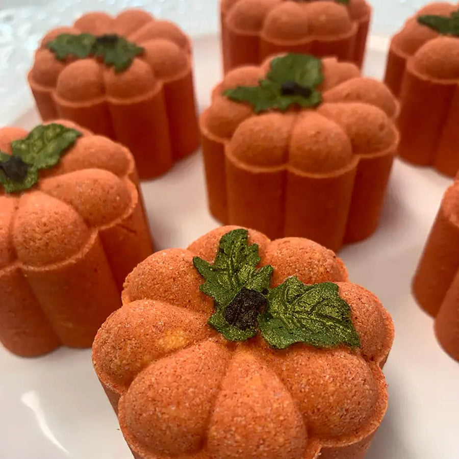 Our amazing little pumpkin bath bombs are handmade and individually painted at Poppy & Thyme! Scented in a wonderful Fall scent! Each bath bomb is individually shrink-wrapped with label on the back. Ingredients: Baking soda, citric acid, cream of tartar, olive oil, phthalate free fragrance oil, FD&C batch certified lake colorant, and mica