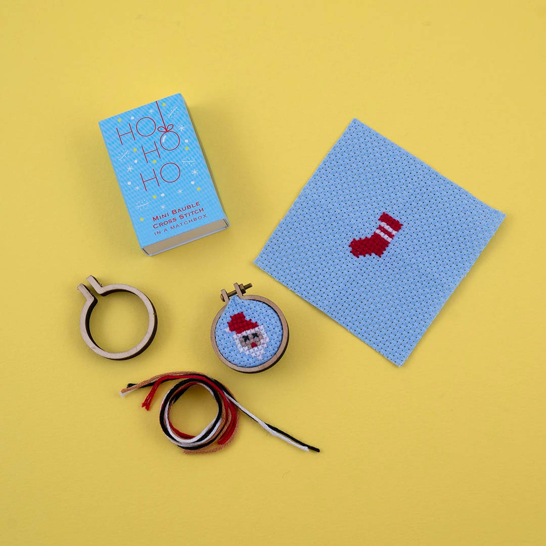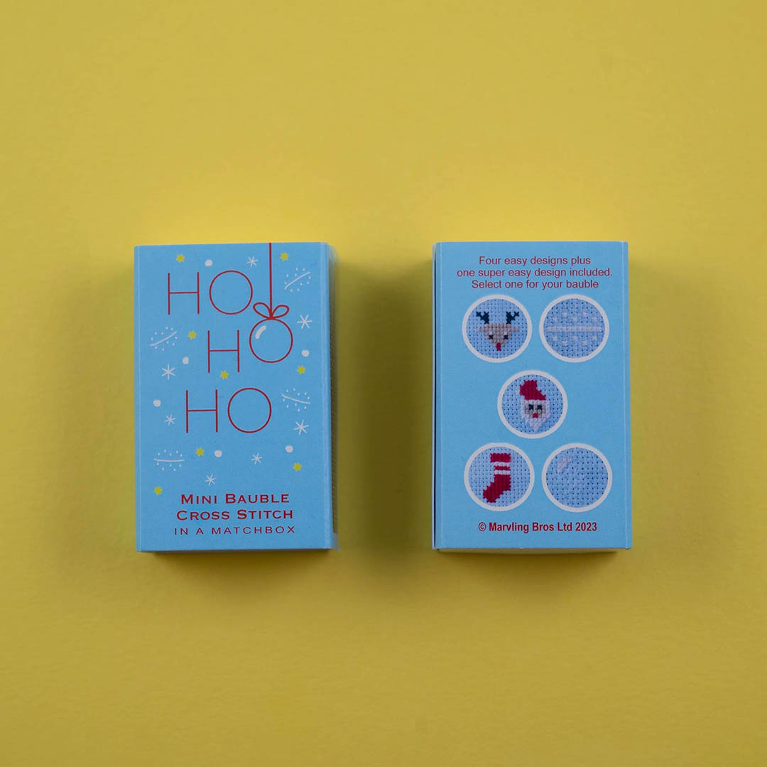Christmas Baubles Ho Ho Ho Cross Stitch Kit In A Matchbox