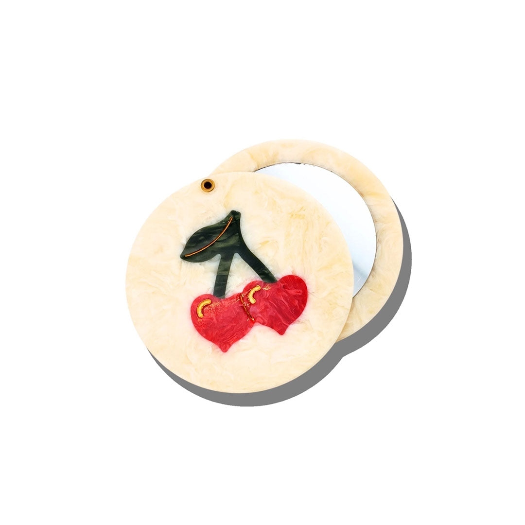 Each mirror features an original, hand-painted design created by Solar Eclipse artists. The Cherry Hearts style is sweet, bold, and just the right amount of cheeky—turning an everyday essential into a flirty, feel-good accessory. Made from our signature biodegradable acetate and packaged sustainably, it’s a timeless piece created to be treasured.