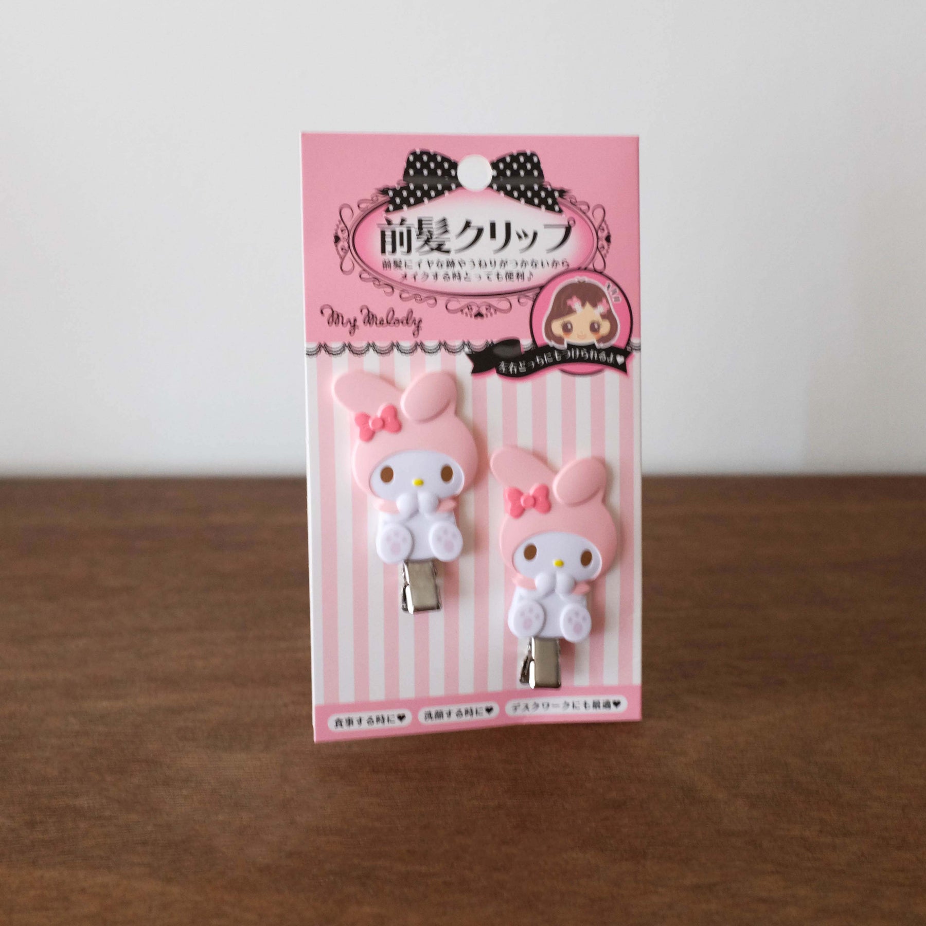 Whether you've got hime bangs or a classic lob, add some sweet charm with these My Melody Classic Hair clips! Each pack comes in a set of two, so you can wear one on each side or both together for a statement look. Wear it with your favorite My Melody merch for a complete look.