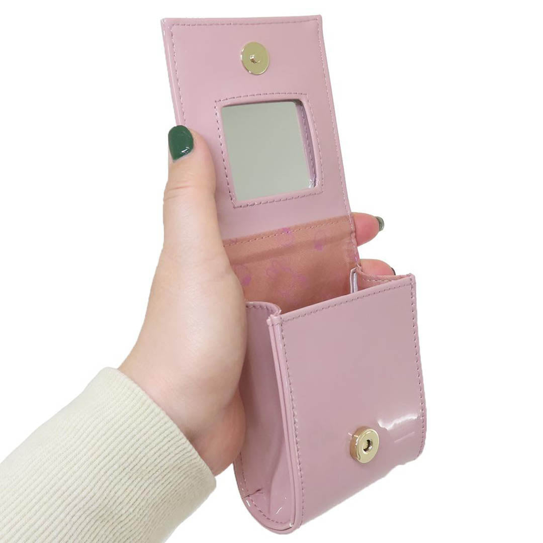 Patent Pink Exterior. Pouch with cute print on the inside fabric as well.