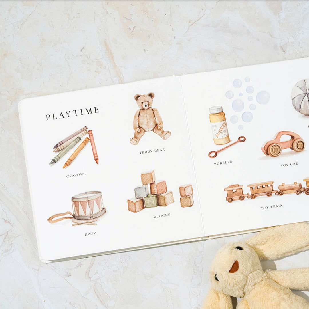 A beautiful, educational board book designed to support early language development. A part of the Tabitha Paige collection—ideal for gift driven retailers, baby boutiques, and curated children’s sections. Speech language pathologist, Tabitha Paige, introduces 100+ foundational vocabulary words across themed categories like Animals, Transportation, and At the Beach. With charming watercolor art and a durable design, it’s a must-have for growing little libraries. • Created by a certified speech therapist to support early language skills • 100+ functional first words with engaging, hand-painted illustrations • Durable 9 x 9 board book—perfect for everyday reading at home or on the go • Bonus seek-and-find activity for interactive learning