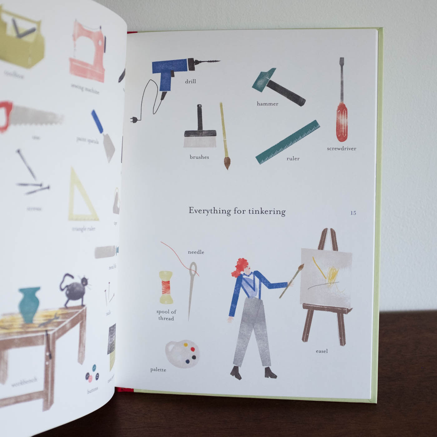 First words are everywhere you look, especially in a house! This visually striking picture book catalogs an impressive array of household items, naming the delightful miscellany that comprises a life. The charming collections are creative and unexpected, providing the sweetest of visual snapshots that reinforce word recognition and understanding. In addition to the everyday kitchen, living room, and garden items, there are surprising and smart illustrated spreads featuring "everything for resting," "everything for warming up," and "everything that gets lost." Plus, a seek-and-find element (a hiding cat!) offers bonus amusement. Children will savor the delicate illustrations of things they are learning to recognize, things they are discovering every day, and things they will cherish and use as they grow.