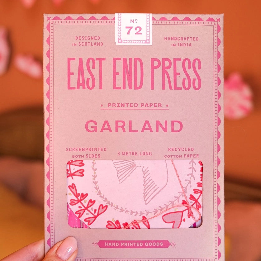 - 3 metres long - Paper shapes sewn along strong cotton thread - Screen printed by hand on both sides by talented artisans in Jaipur - Sustainably made from recycled materials