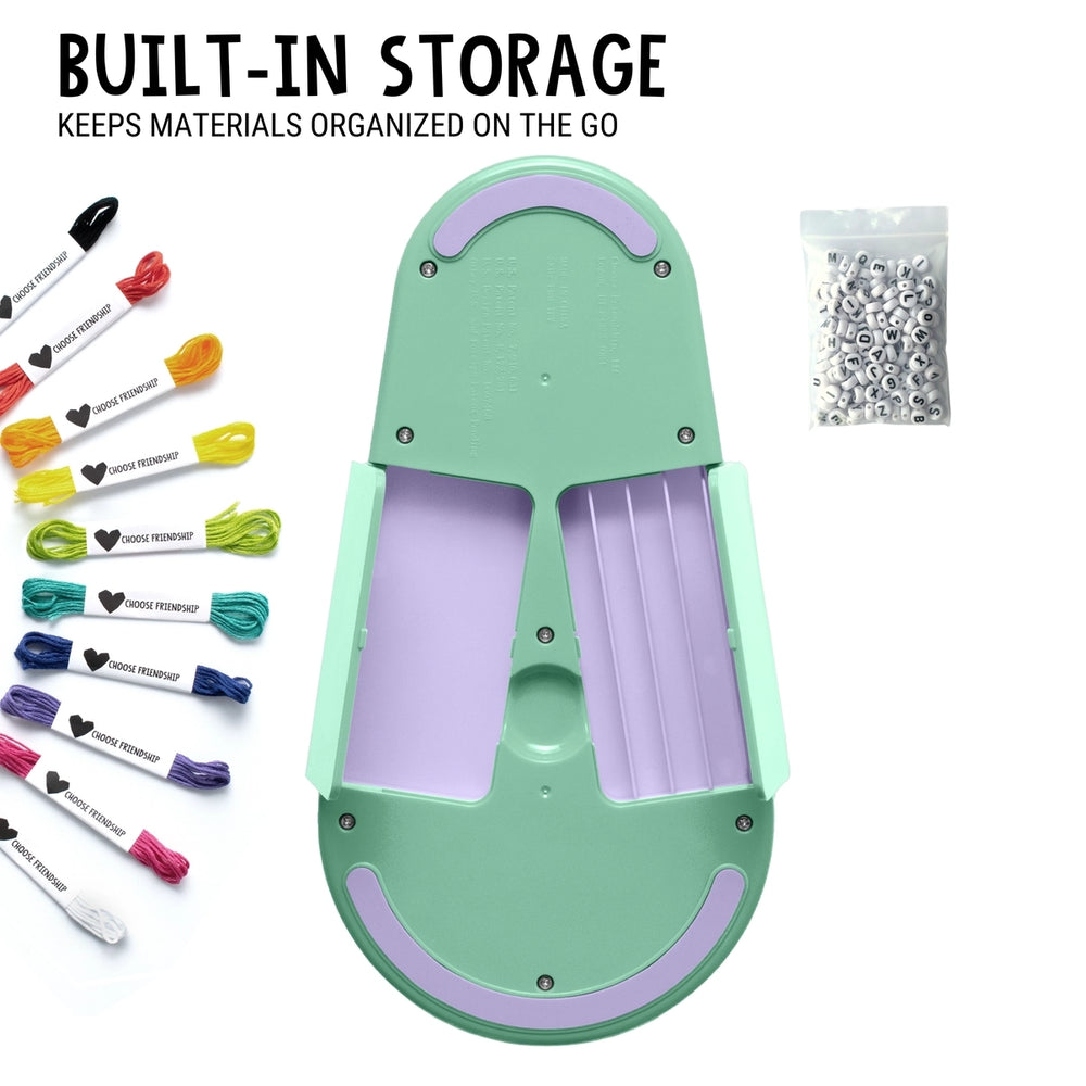 Updated design keeps crafting simple: the new heart-shaped clip flips open to hold a mobile device and for easy, hands-free watching. The improved clip securely holds the bracelet loop without slipping and slides up and down as your bracelet progresses. The textured pegs hold threads in place stronger than ever for easy crafting. It also features a ruler to measure bracelets. Perfect for beginners: this kit has everything you need to get started, including the my friendship bracelet maker®, thread, and an instruction sheet. Don't worry about not having enough supplies, because this kit includes 20 pre-cut threads in 10 vibrant colors that will make up to 8 bracelets. Clip it, knot it, tie it: in 3 easy steps, you'll make your own bracelets with the my friendship bracelet maker®. Get crafty with your friends and create awesome bracelets that you'll love. The best part? No tape, pins, or extra hands required. Convenient storage: the bracelet maker's clever.