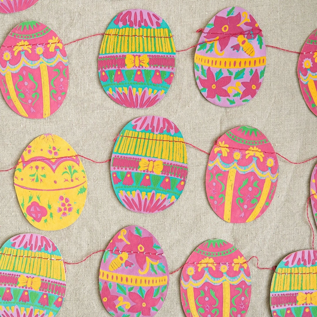 Celebrate Easter with this egg themed garland, with twenty little decorative eggs in Spring colours sewn along the three metre length.