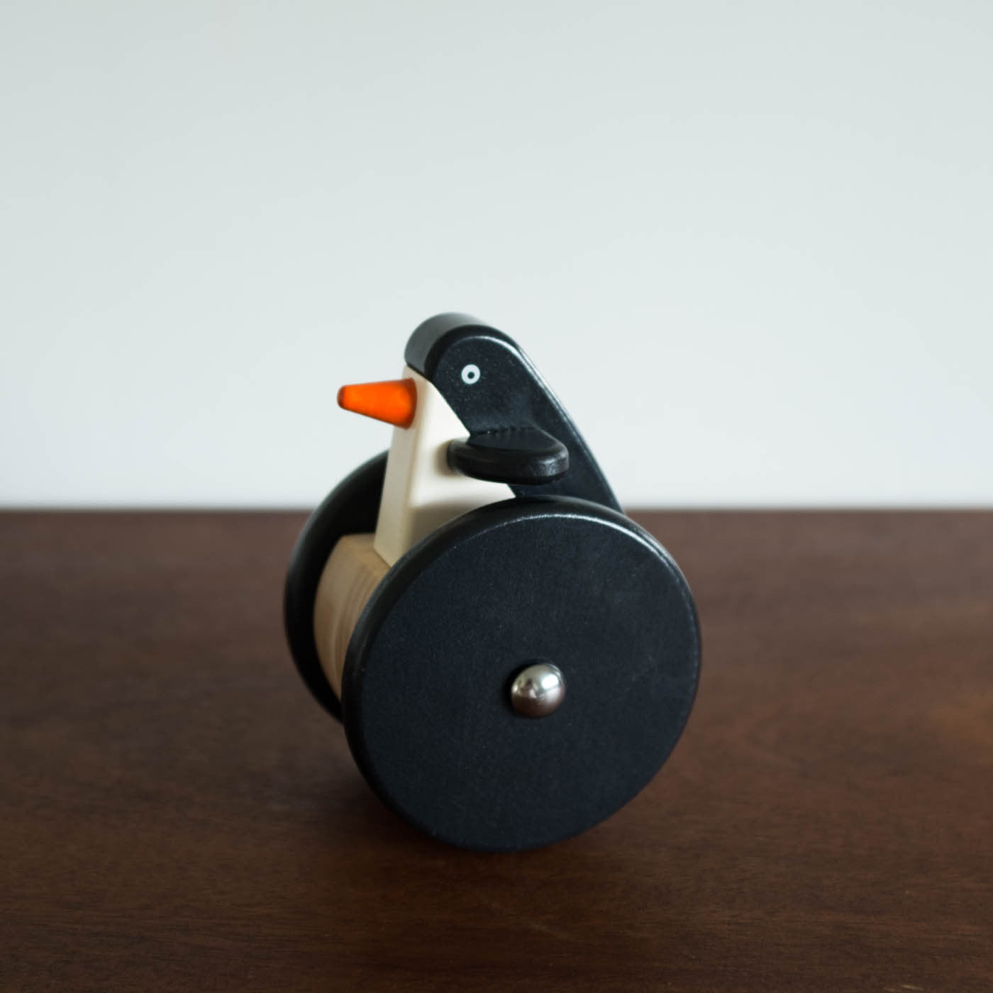 Adorable, wobbling wooden Penguin. It's made of a beautifully crafted and soft stained wood. It's heavy enough to steadily wobble back and forth and remain standing upward. The bird can easily turn around on itself. It's great yet simple entertainment. This wobbling Penguin is apart of our toy collection for tiny people, but it can be used by teens and adults alike.