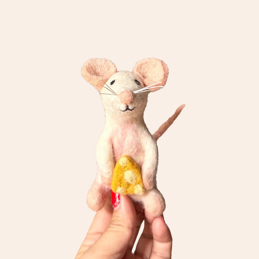NEW Wool Felt Finger Puppet- Cheese Mouse